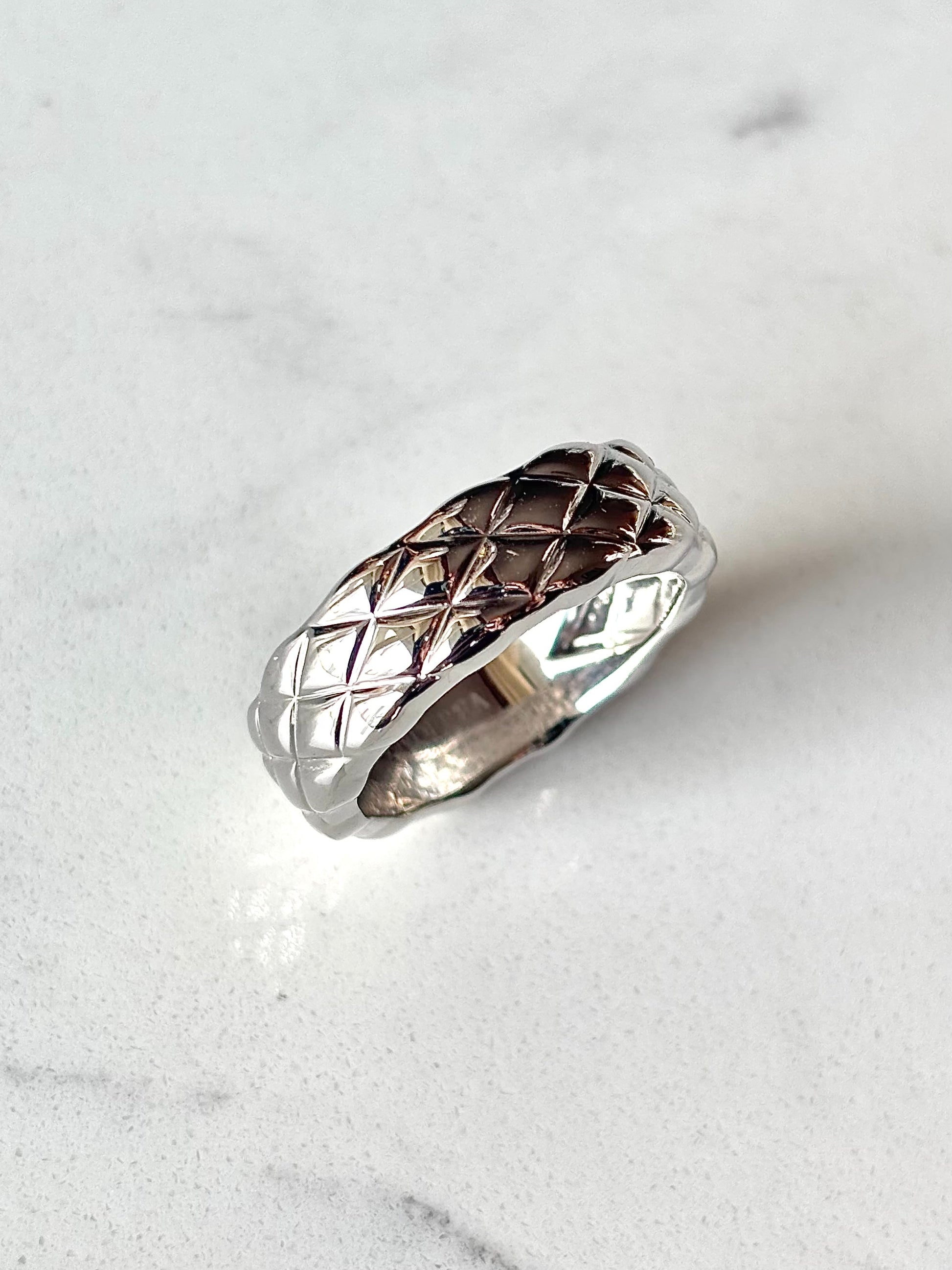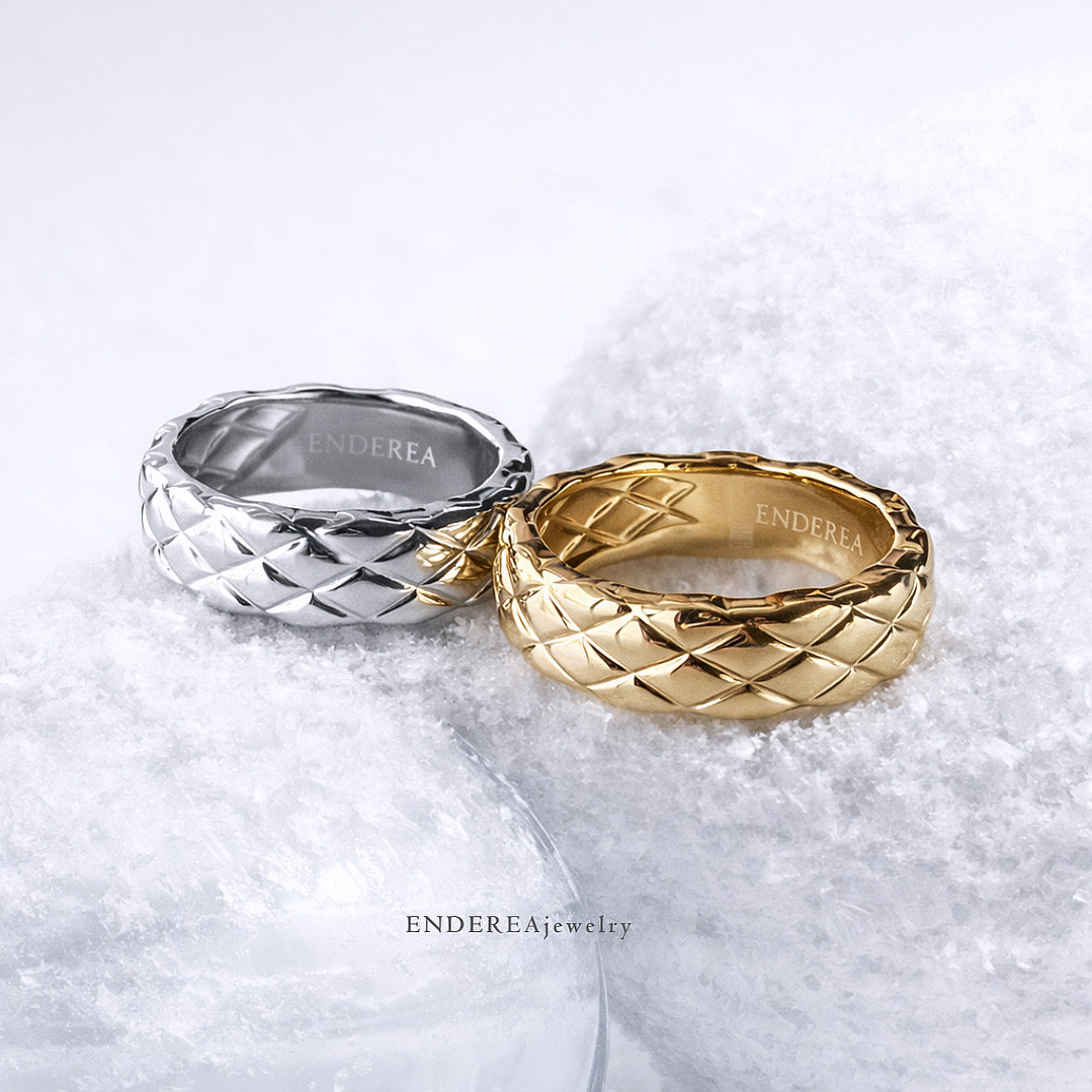 石を用いないからこそ際立つ、金属の質感と、光が描く静かな陰影。指の動きに呼応するように表情を変え、控えめでありながら都会的で洗練された確かな存在感。