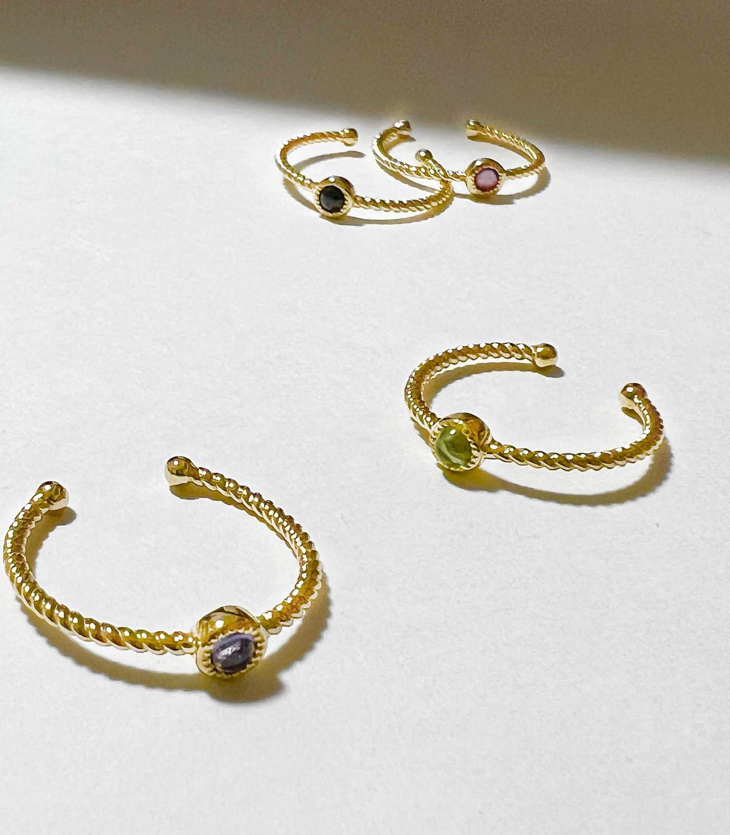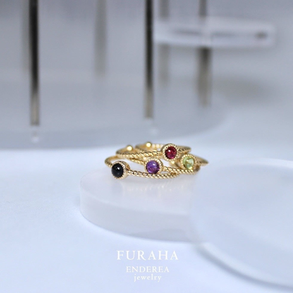 gem stone(天然石)×リングの美しいフリーサイズコンビネーションのラインナップ。彩り豊かに〝女性らしさ〟や〝幸せ〟を象徴するENDEREAオリジナルリング。つるりとした愛らしいカボションカットの艶やかな天然石がお手元で瑞々しい輝きを放ちます。