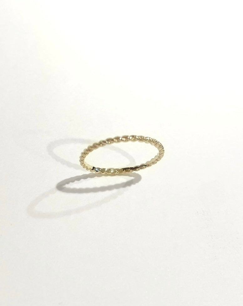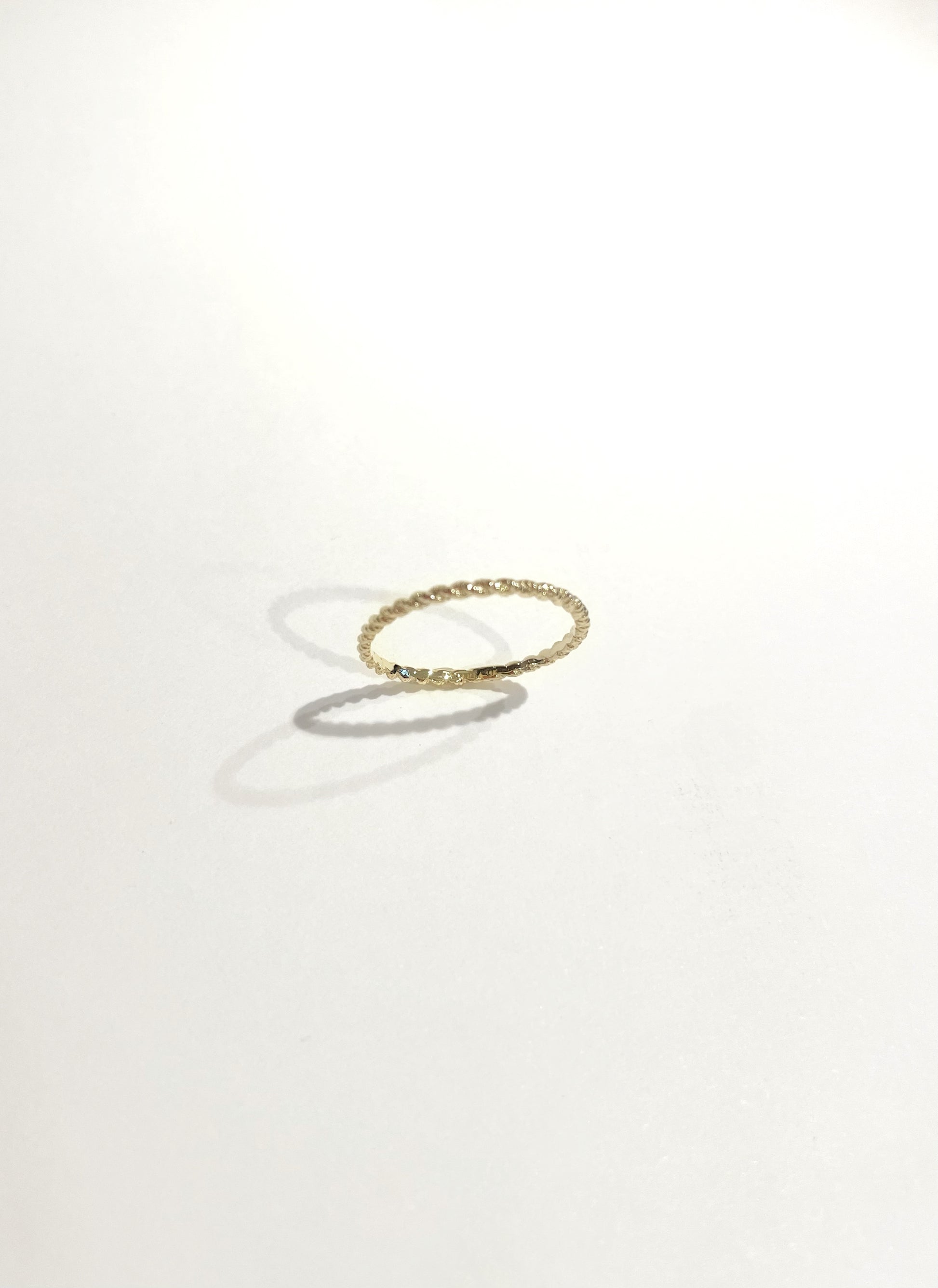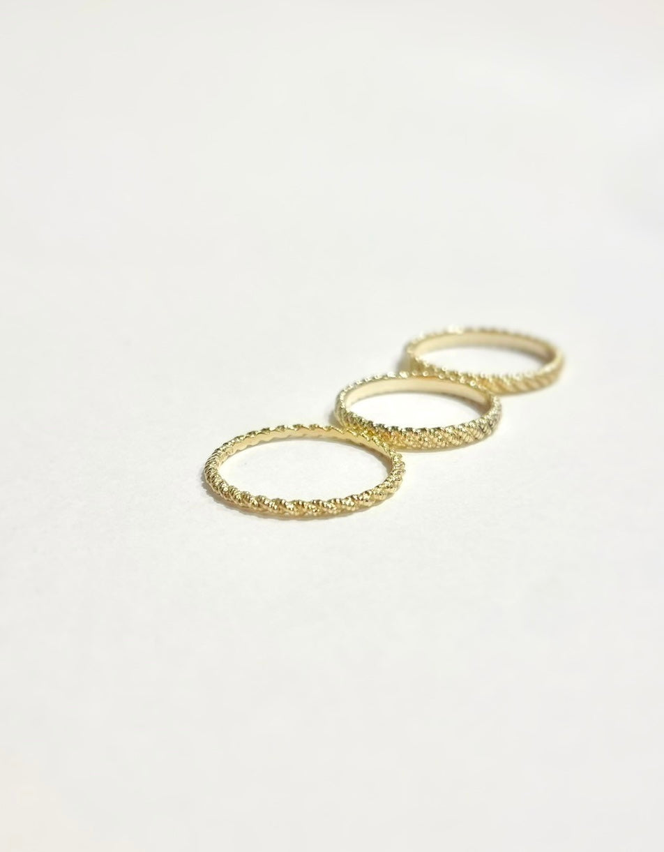 立体感が失われることなく側面からも地金の繊細なツイストデザインで光をキャッチしキラキラと輝くリングです。