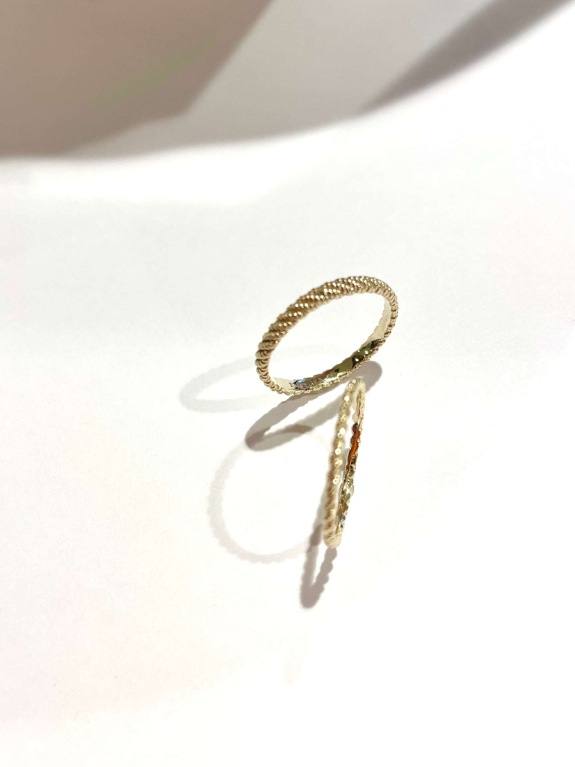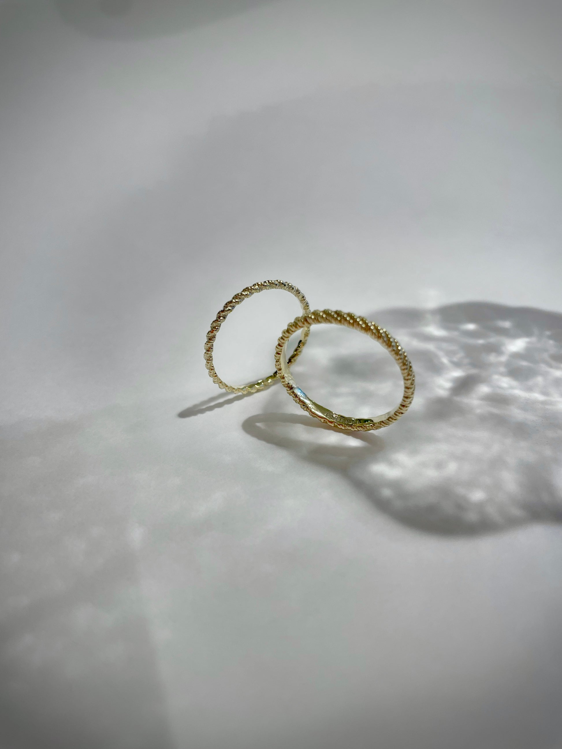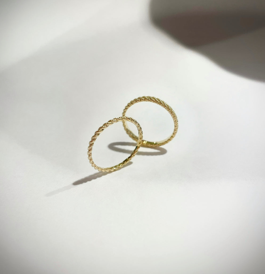 立体感が失われることなく側面からも地金の繊細なツイストデザインで光をキャッチしキラキラと輝くリングです。